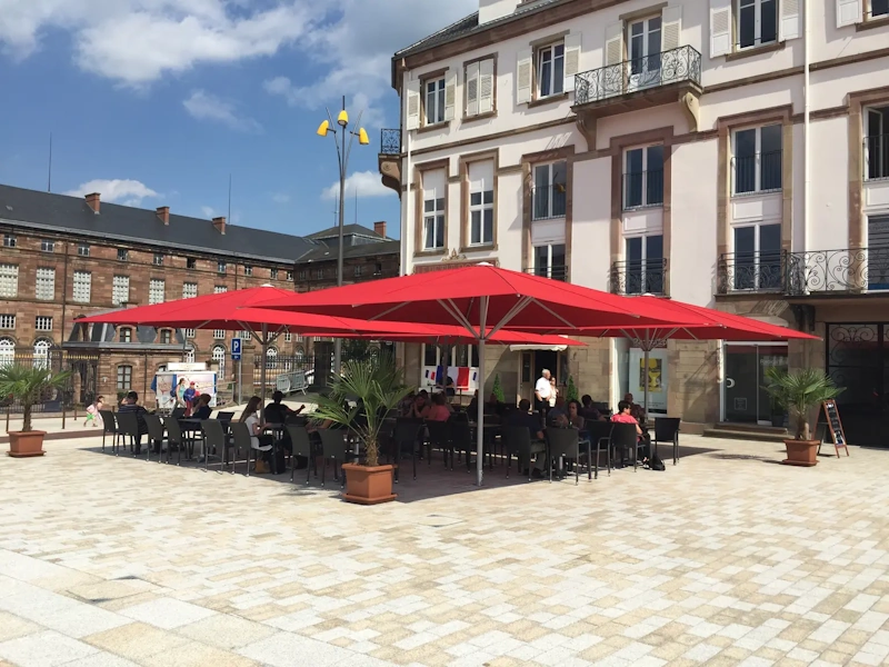 Großschirme kombinieren Funktionalität mit einem klaren, ansprechenden Design und sind besonders in der Gastronomie und Hotellerie beliebt. Aber auch für private Gärten sind sie eine attraktive Option, wenn großflächiger Sonnenschutz gefragt ist.